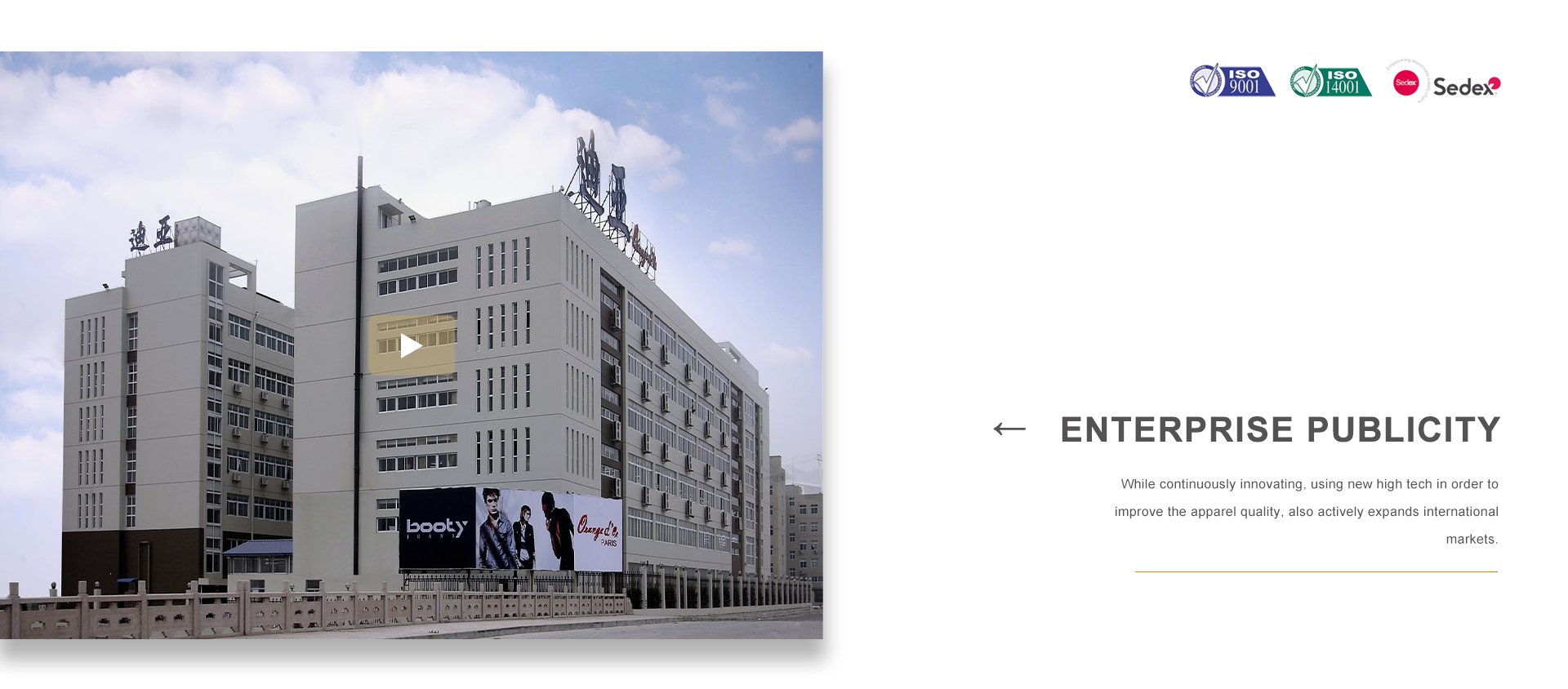 浙江迪亞服飾有限公司于1998年在世界時(shí)尚品牌之都——法國巴黎二區(qū)應(yīng)運(yùn)而生。同年,在浙江省甌海經(jīng)濟(jì)開發(fā)區(qū)東方南路28號(hào)設(shè)立服裝制造工廠。公司集服裝設(shè)計(jì)、生產(chǎn)、營銷、品牌于一體,在不斷創(chuàng)新、采用高新技術(shù)提高服飾質(zhì)量的同時(shí),積極拓展國際市場,海外營銷部長期與LV集團(tuán)旗下的MAJE、SOEUR、BALIBARIS等國際著名品牌保持非常緊密的合作關(guān)系。
